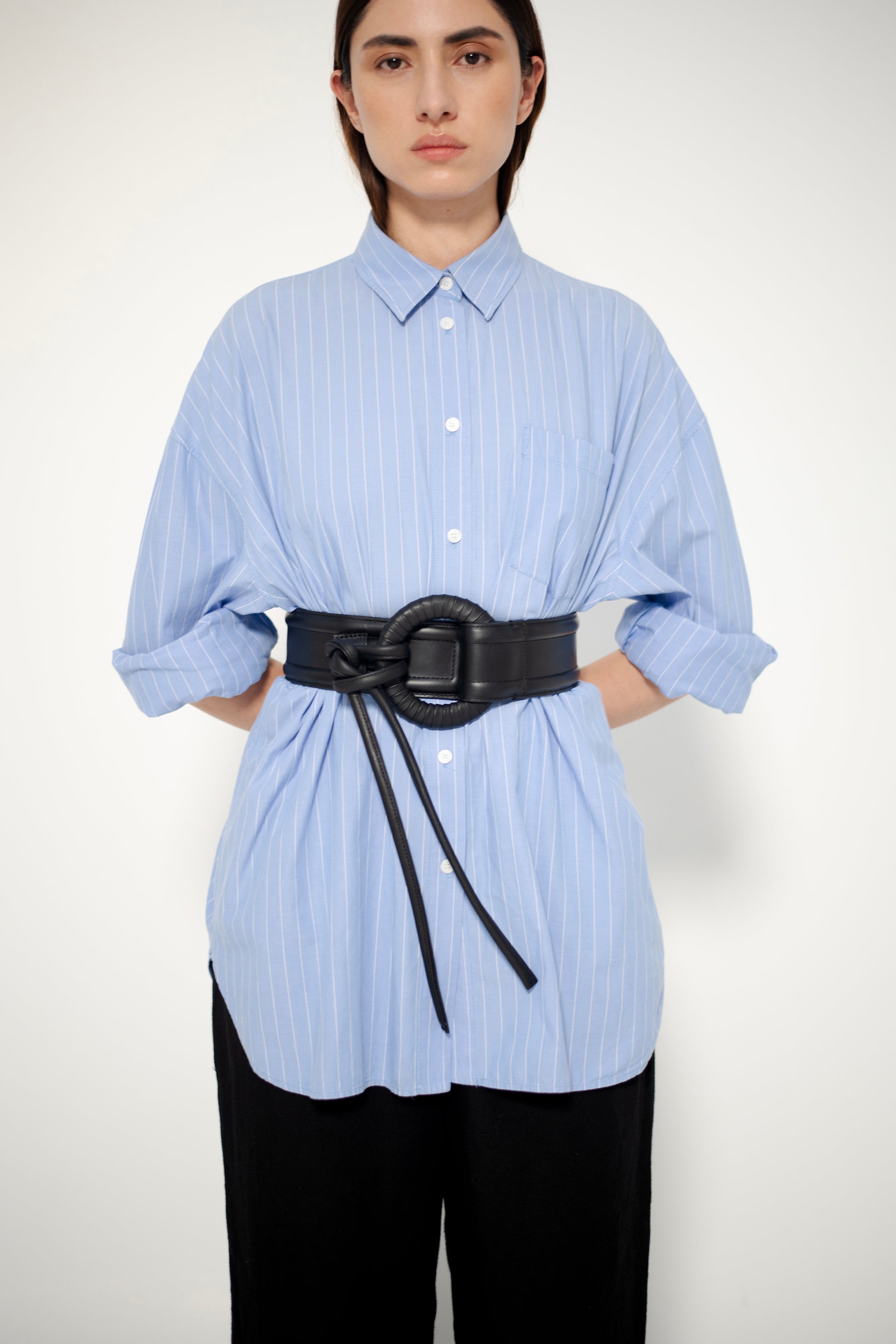 Una de nuestras piezas representativas de la nueva colección. Cinturón hecho a mano con una argolla delicadamente tejida en cuero. Cierre ajustable con cordones.